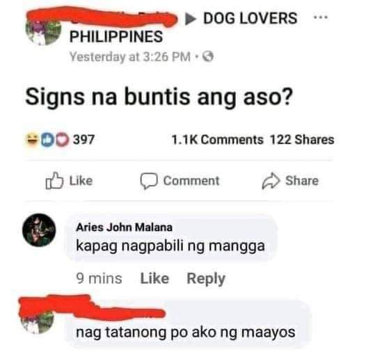 in Funny, Only in the Philippines Not a dog lover? by GagGod October 28, 2021, 6:43 PM 37 Views https://twitter.com/ricoreal12/status/1453345360902950920 dogDog loverFunnyMeme What do you think? 0 Points Upvote Downvote